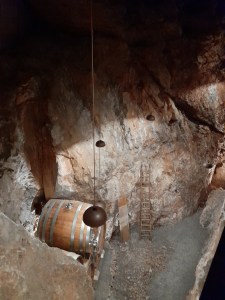 Skerk, l’ultima cantina della giornata, è la cantina più bassa di Prepotto, e anche questa, come Zidarich, è rivolta verso il mare. Azienda relativamente recente, lavora bene, vende molto e investe altrettanto. Il vino è riconosciuto, la qualità dei prodotti non è all’oscuro. Arrivo nel momento giusto perché la cantina è appena stata ristrutturata, praticamente rifatta. La sala degustazione è all’interno di una più grande sala scavata nella roccia e divisa da lastrone enormi, monumentali, mostruose di marmo locale Aurisina. La costruzione mette soggezione; e non ho visto tutto. Il mio accompagnatore con un sorriso mi invita a osserva poco più in là dalle botti, e ecco che le vertigini mi salgono fino a ledermi la testa: in basso dopo una ringhiera di sicurezza si apre una voragine spaventosa, in cui sul fondo soffusamente illuminato stanno delle botti di grandi dimensioni. Di qui partono grotte carniche naturali, e sono l’esemplificazione massima del suolo del Carso.