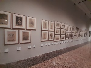 Lo spazio seguente è dedicata all’eros. È una ambiente oscuro, dai temi profondi e cifrati, dai richiami lontani, archetipici. Anche la pittura si fa ombrosa, misteriosa, misterica. E prosegue su questa linea alchemica anche nelle sale successive, seppur i temi non sono più l’eros bensì la natura, o meglio la Natura, nel lato più nascosto, indicibile e infinito che possiede. Qui il frottage trova la miglior espressione e, anche grazie all’allestimento enciclopedico e dall’effetto stupefacente (una intera parete è pervasa di questi fogli), credo sia la parte migliore della mostra.