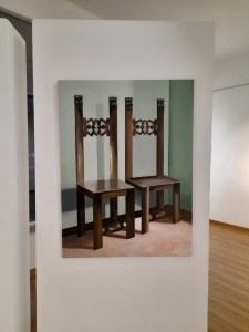 Se Pedrinolla, pur inconsapevolmente, prosegue e riabilita in una nuova chiave il Simbolismo, Roberta Cavallari si allaccia a temi e soluzioni cari a Hopper e Domenico Gnoli. In mostra alla Craffonara si può notare come l’attenzione dell’artista si focalizzi sugli oggetti domestici della vita quotidiana, scorci di stanze perfettamente in ordine, sedie come unico soggetto, tappeti, e finestre. Ci sono primi e primissimi piani, gli oggetti sono dilatati con una volontà non iper-realistica, bensì magica, aleatoria. Al contrario di Pedrinolla la pittura si fa precisa, limpida, puntuale; gli spazi sono dotati di grande luminosità, e gli oggetti rappresentati sono fortemente plastici.